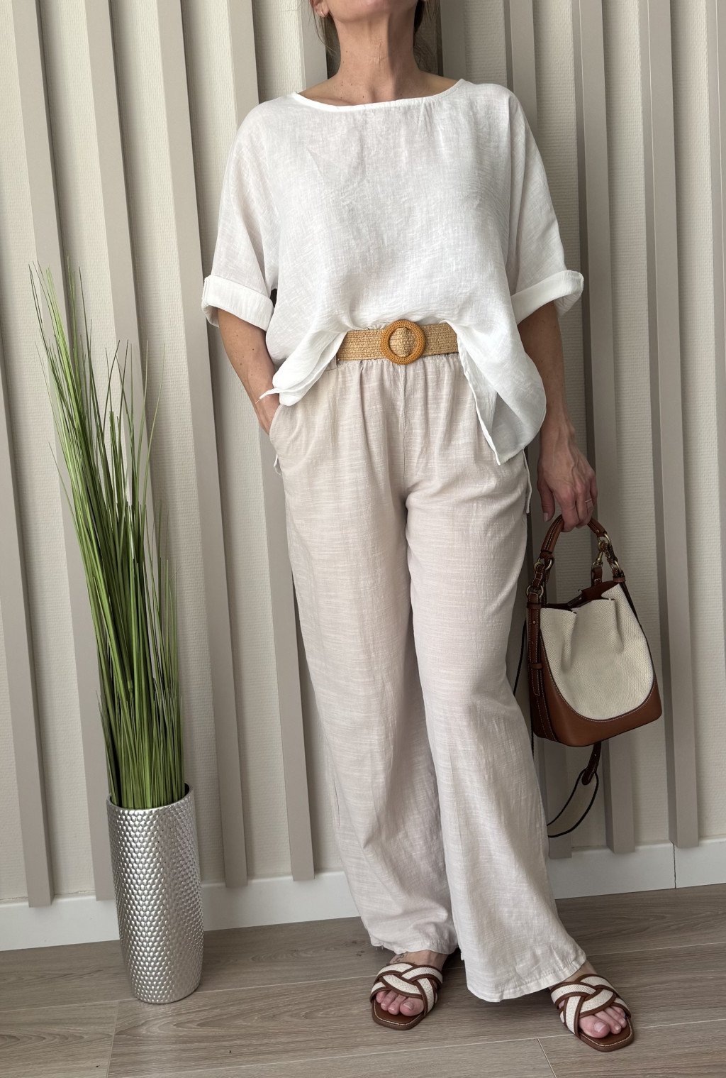 Párosítsd lenvászon nadrággal vagy rövidnadrággal egy laza városi sétához.