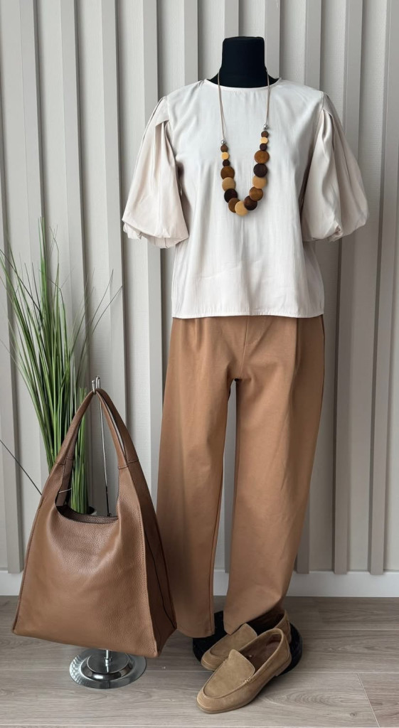 Letisztult, nőies szabású felső, amelyet a látványos puffos ujjak tesznek különlegessé. Könnyed, lágy esésű anyaga kényelmes viseletet biztosít egész nap, miközben elegáns megjelenést kölcsönöz. Tökéletes választás hétköznapi és alkalmi szettekhez is.